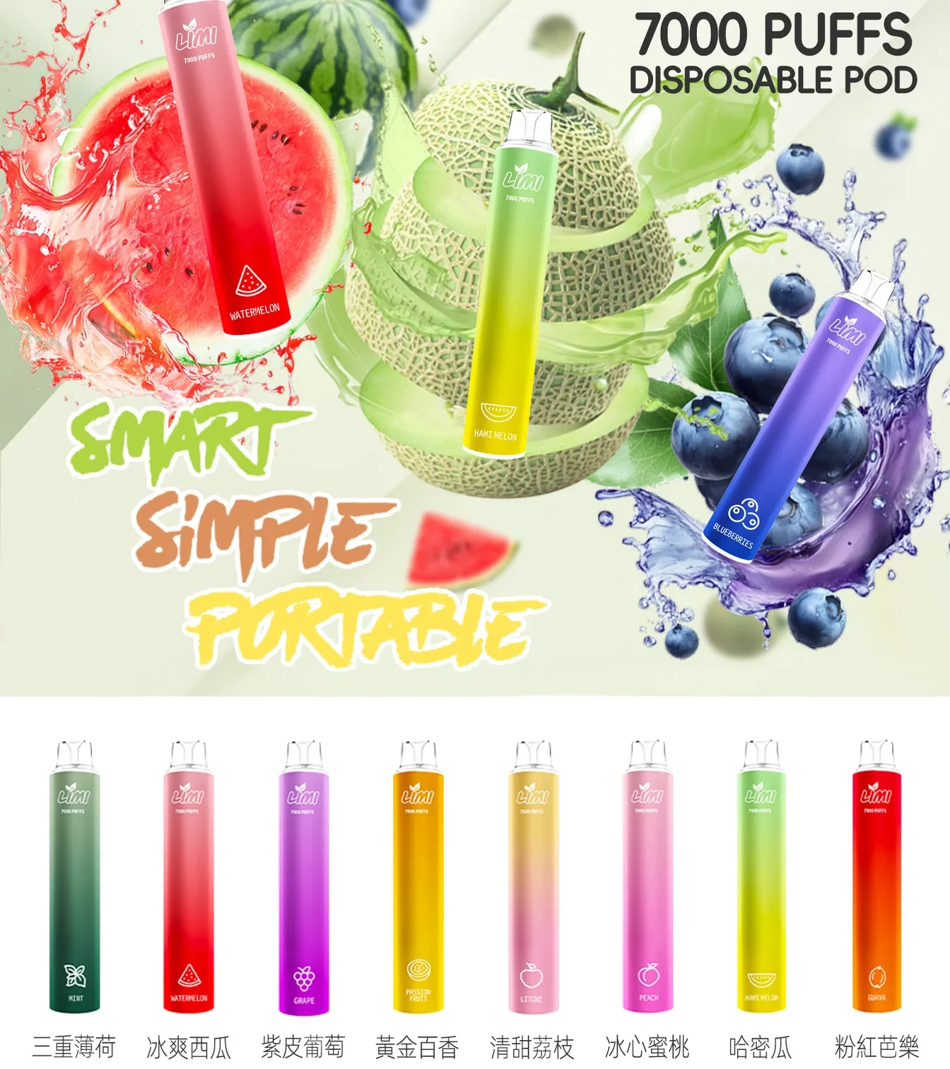 NT$1,700LIMI 7000口 抛棄式/一次性霧化棒 可充電電子煙